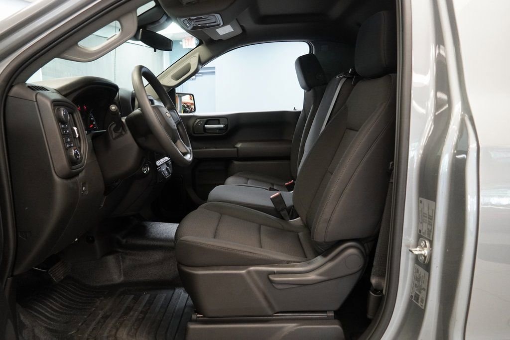The Silverado's exterior, finished in a sophisticated Sterling Gray Metallic, exudes strength and style, making a statement on any terrain. The 2D Standard Cab design offers a sleek profile while providing ample space for your gear and tools. Whether you're hauling heavy loads or cruising down the highway, this truck is built to handle it all.